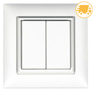 Easyclick-Wandsender neutral, 4-Kanal, reinweiss 2 Wippen mit Mittelstellung, ohne Bedruckung mit Feller Edizio Due Kombinationsrahmen .